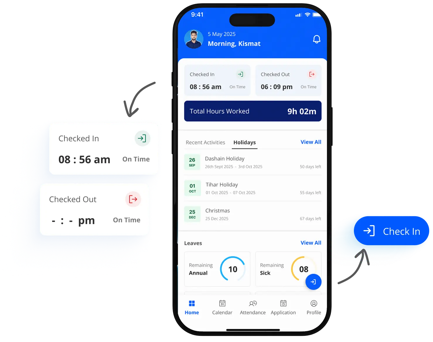 Apply for leave, view balances, track attendance logs, and check shift schedules, all available in real-time.